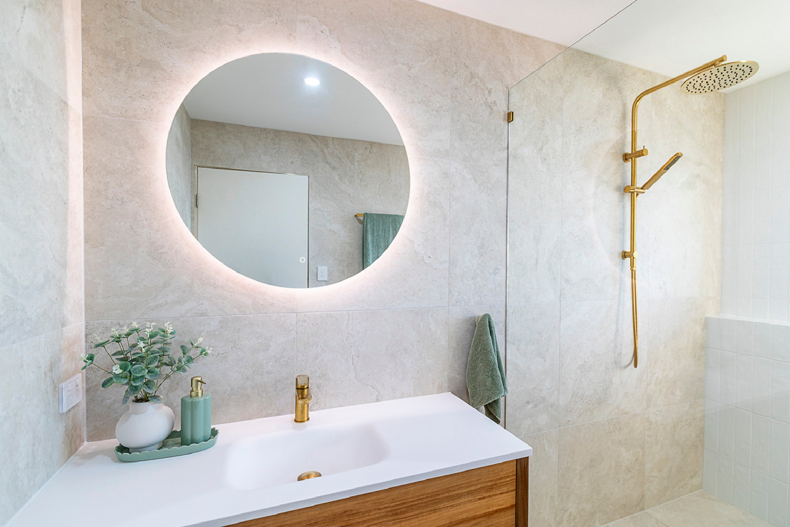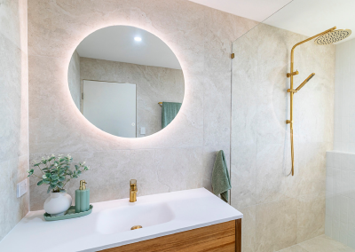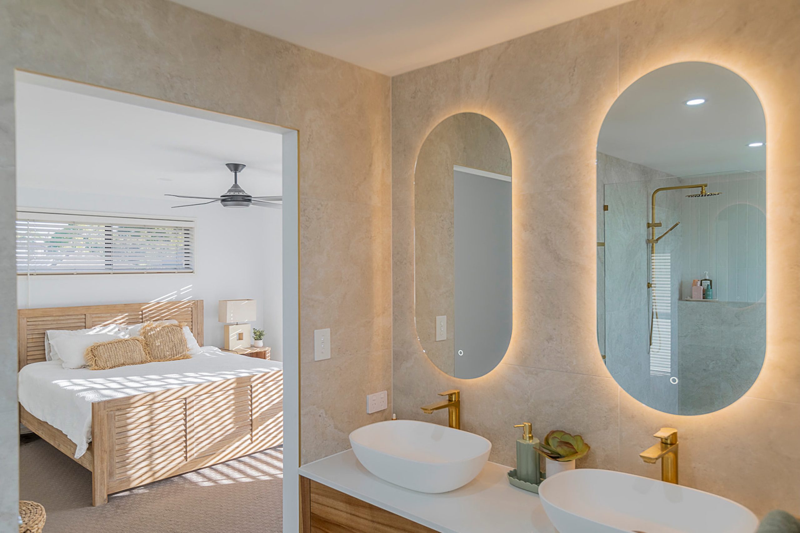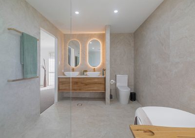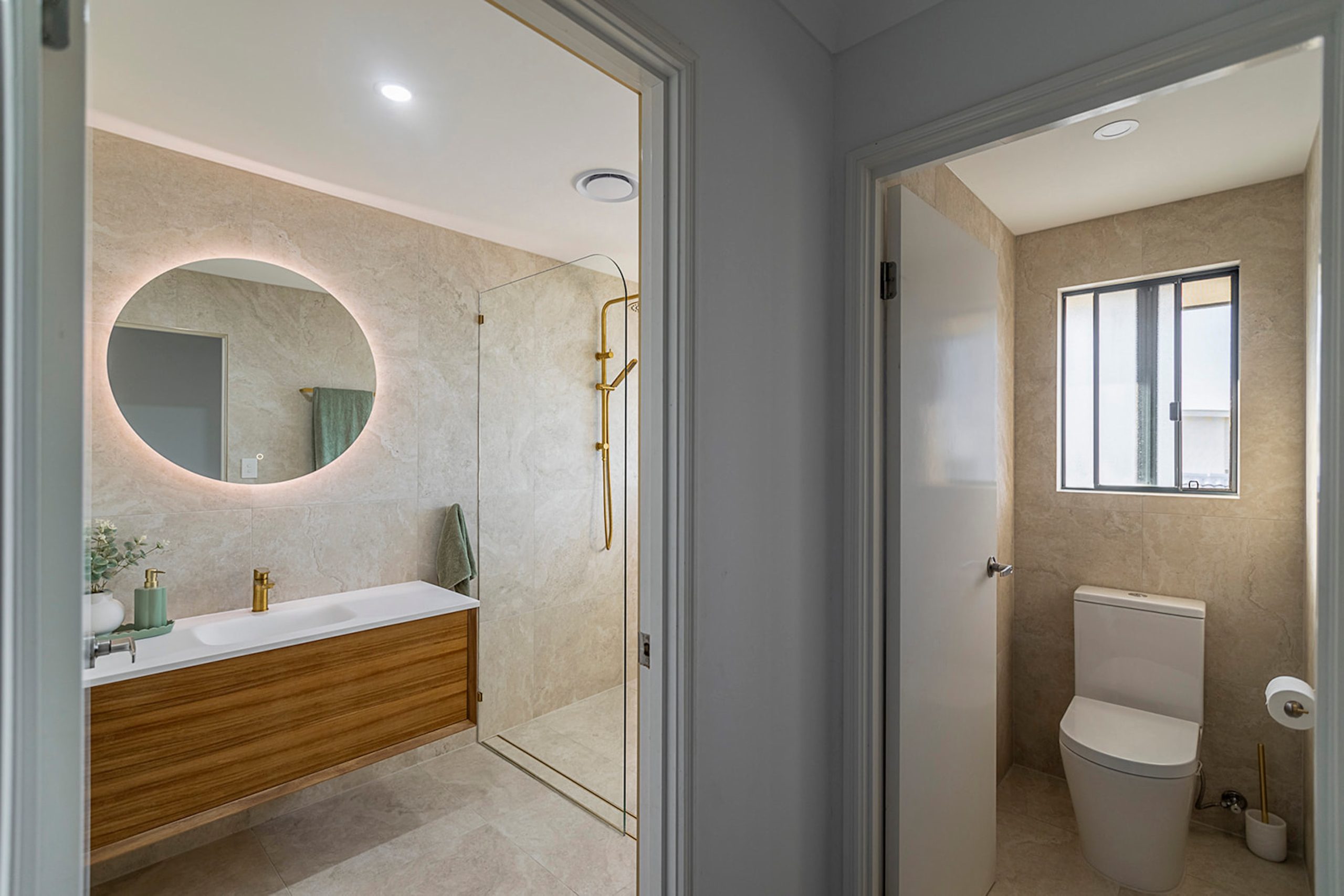 What began as a safety repair after discovering severe termite damage soon became a full-scale transformation. The children’s bedrooms were rebuilt with comfort and function in mind, while the family bathroom was elevated with marble tiles, brushed brass tapware, and a bold black toilet. To complete the project, the master ensuite was reimagined as a serene, hotel-style retreat with high-end finishes and a refined, elegant feel.